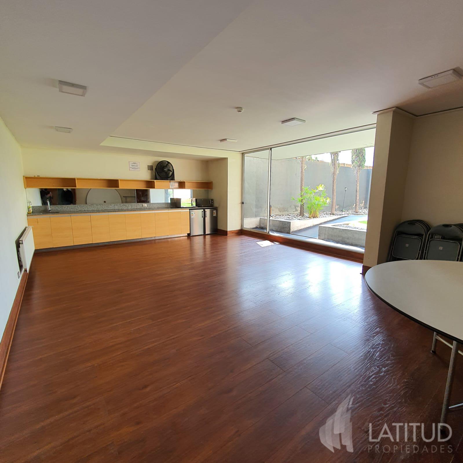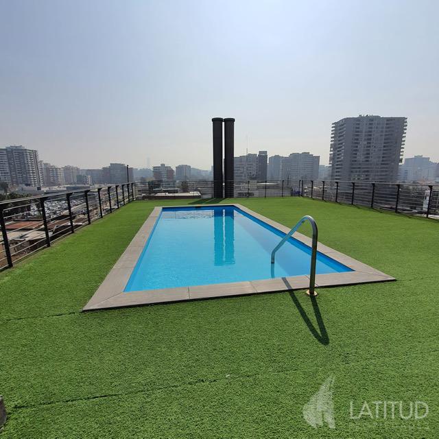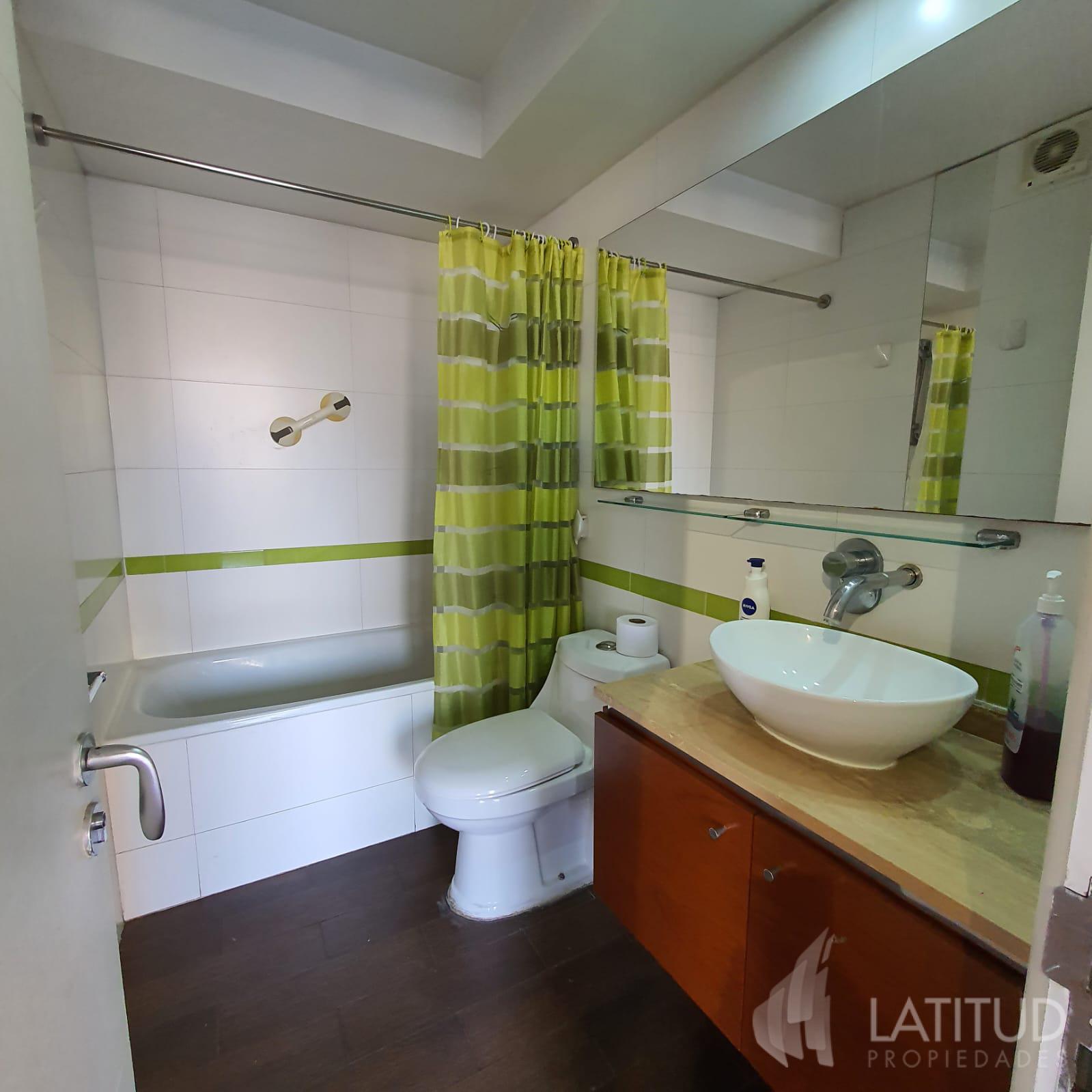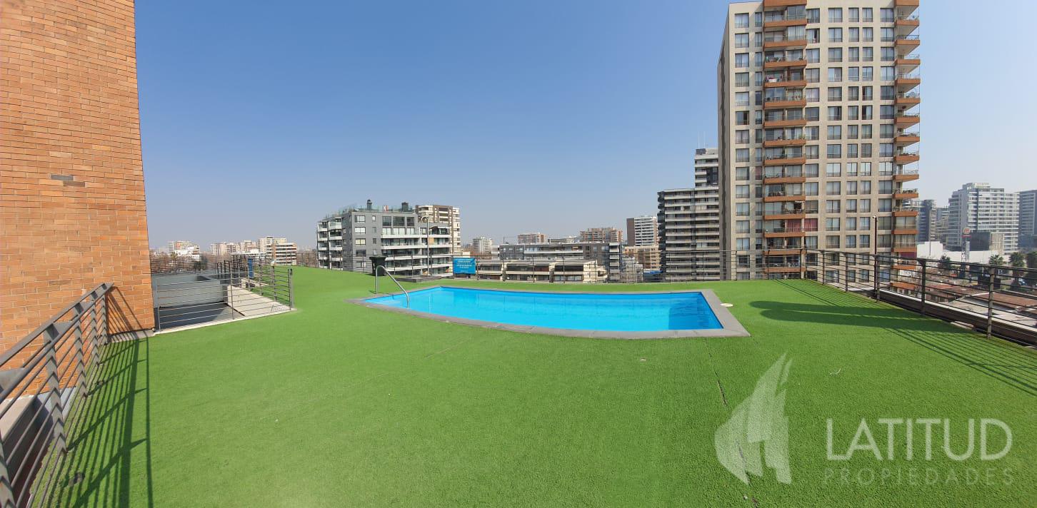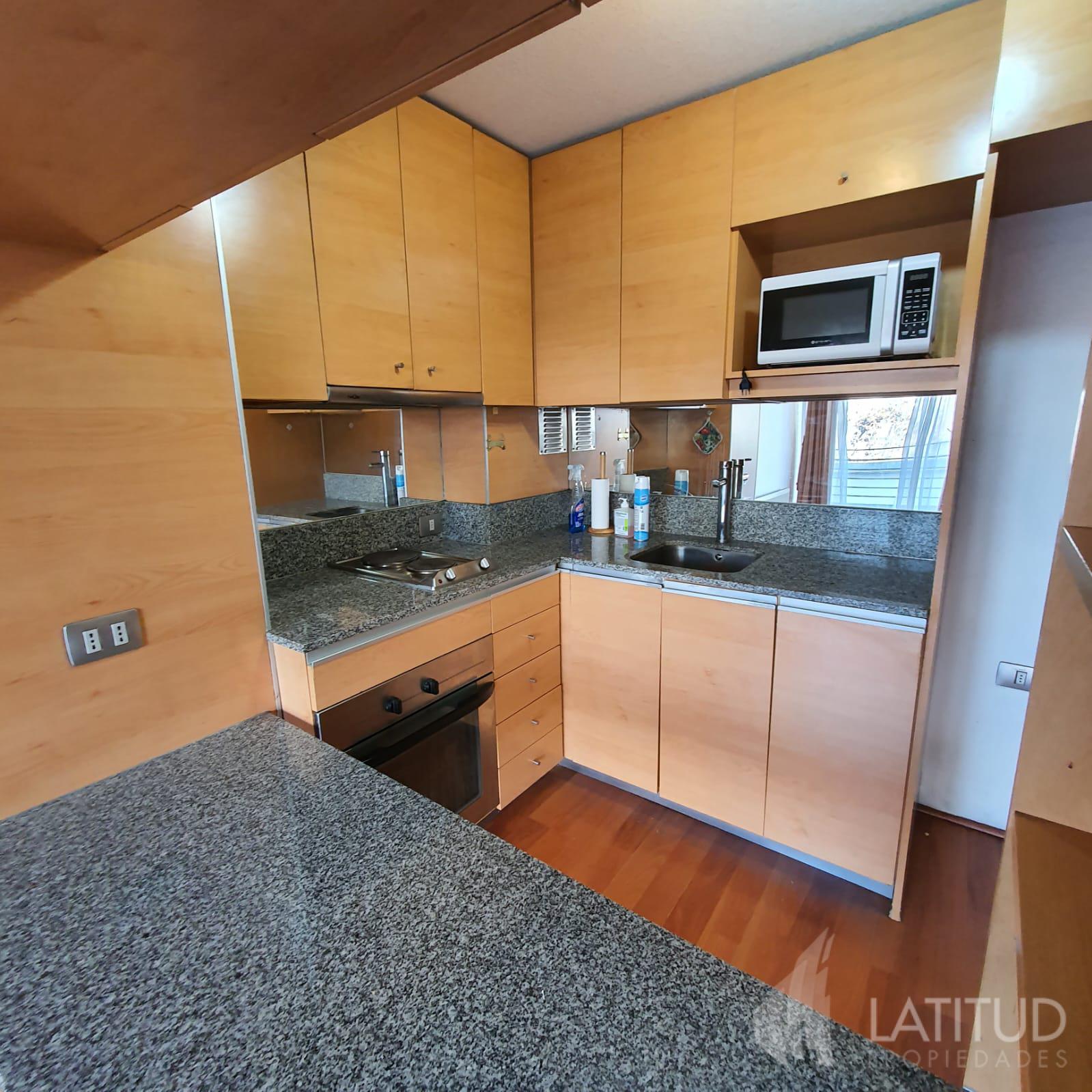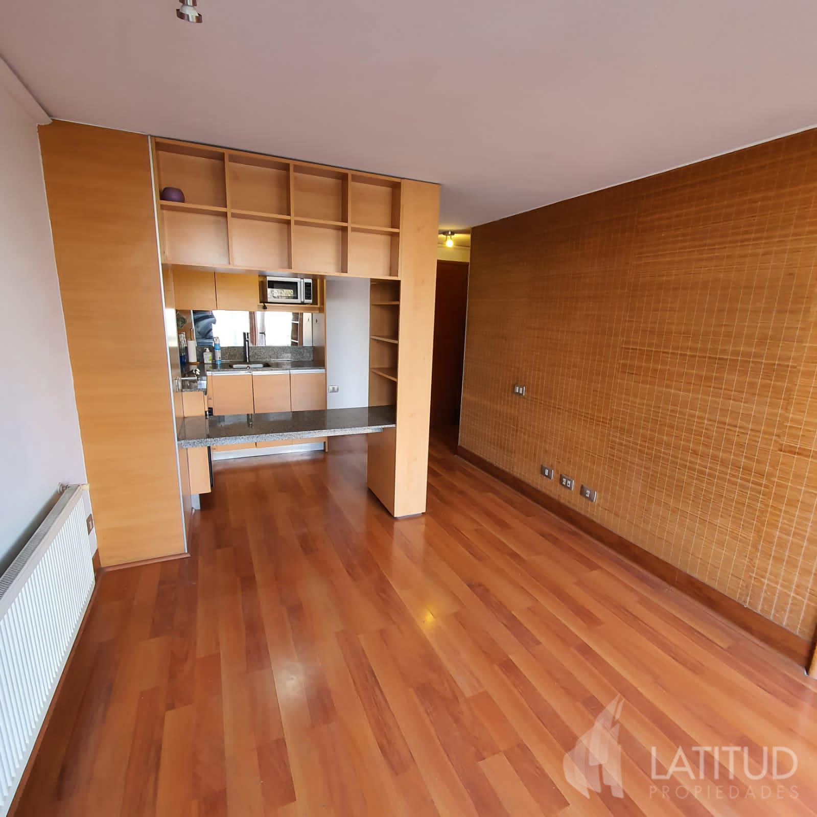 - Departamento de 2 ambientes, en buen estado de mantención, ubicado en un 4º piso de edificio con muchos servicios. Cuenta con cocina americana, living con salida a terraza y 1 dormitorio en suite, walk-in clóset y salida a terraza. Piso flotante en todo el departamento y equipo de aire acondicionado. Tiene 1 estacionamiento subterráneo y bodega.